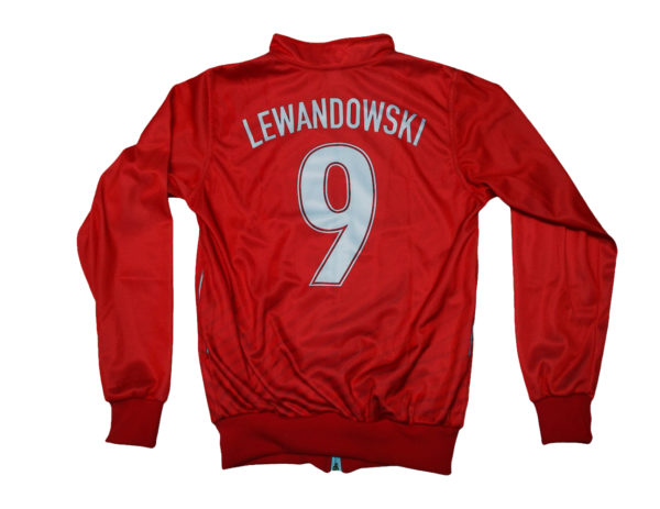 Bluza kibica w kolorze czerwonym z nadrukiem przedstawiającym z przodu polskiego orła i napis Polska, a z tyłu napis Lewandowski.