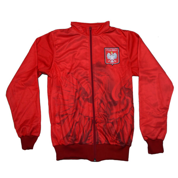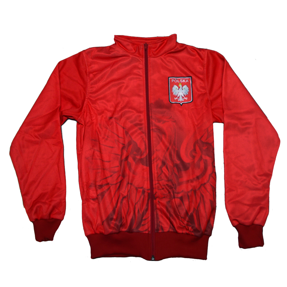 Bluza kibica w kolorze czerwonym z nadrukiem przedstawiającym polskiego orła i napis Polska.