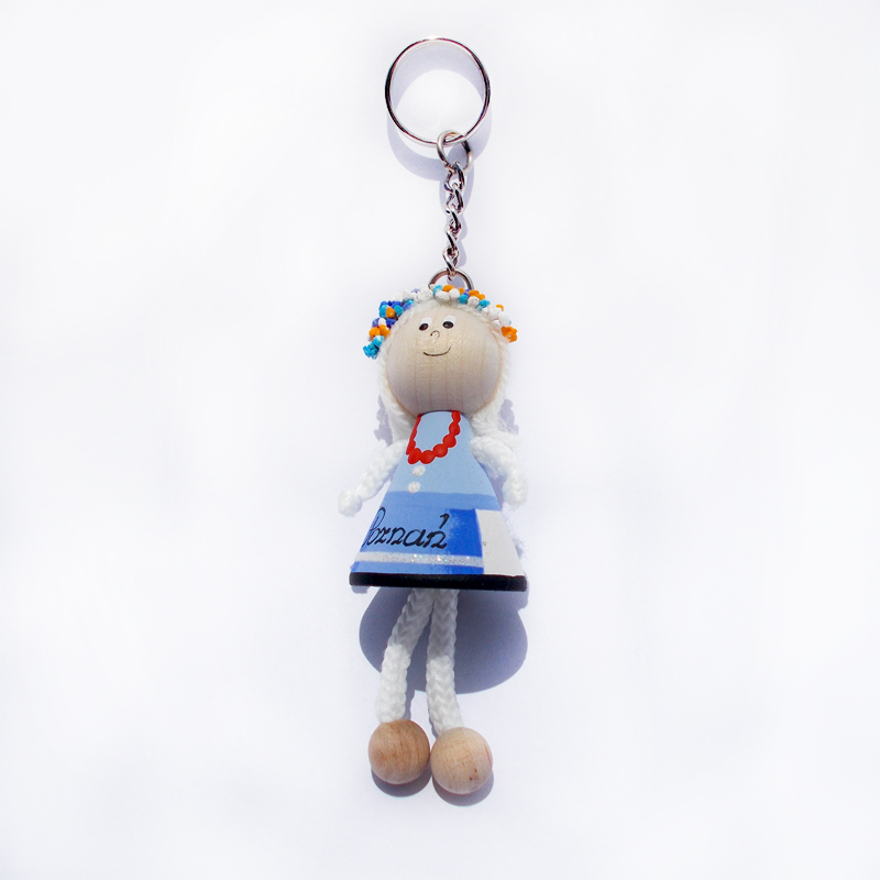 Brelok drewniany z lalką Poznań.
