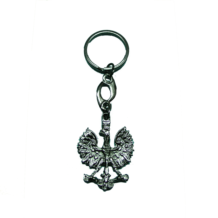 Metalowy brelok ozdobiony wizerunkiem orła.