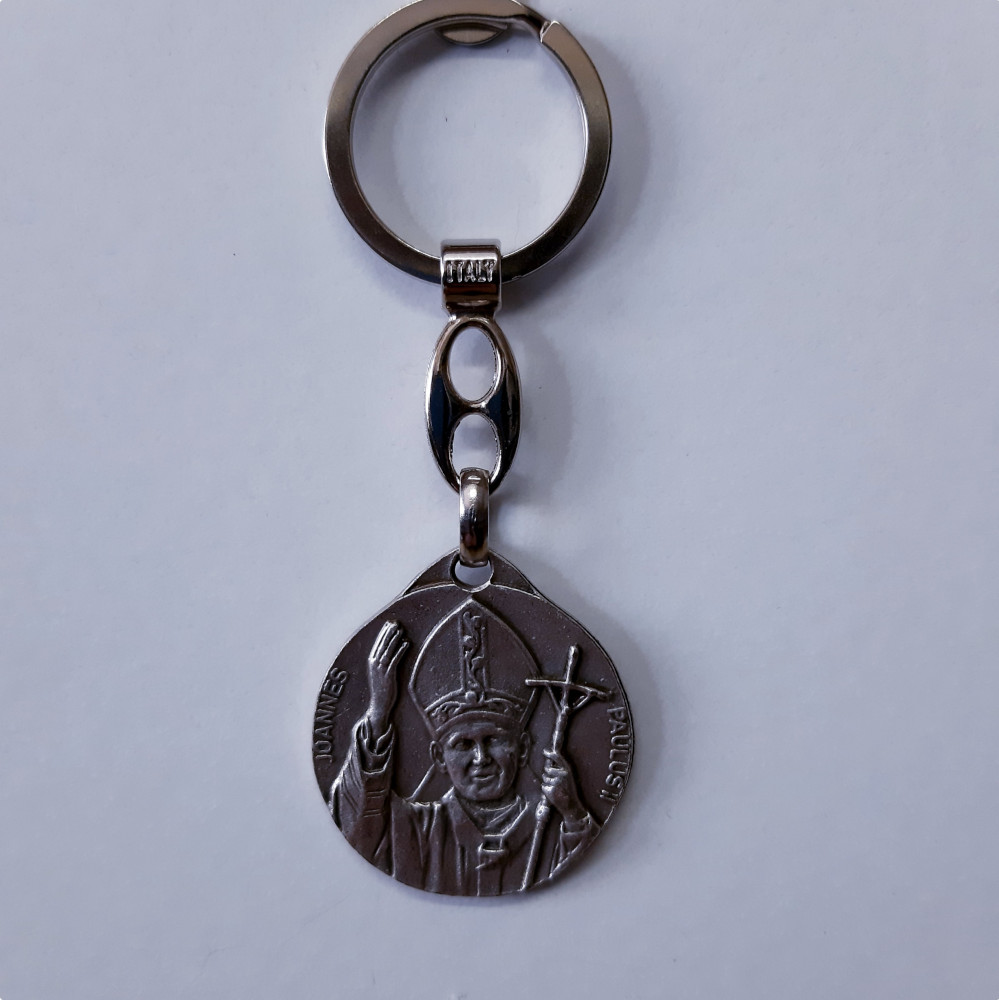 Brelok metalowy ze Św. Krzysztofem i Papieżem Janem Pawłem II