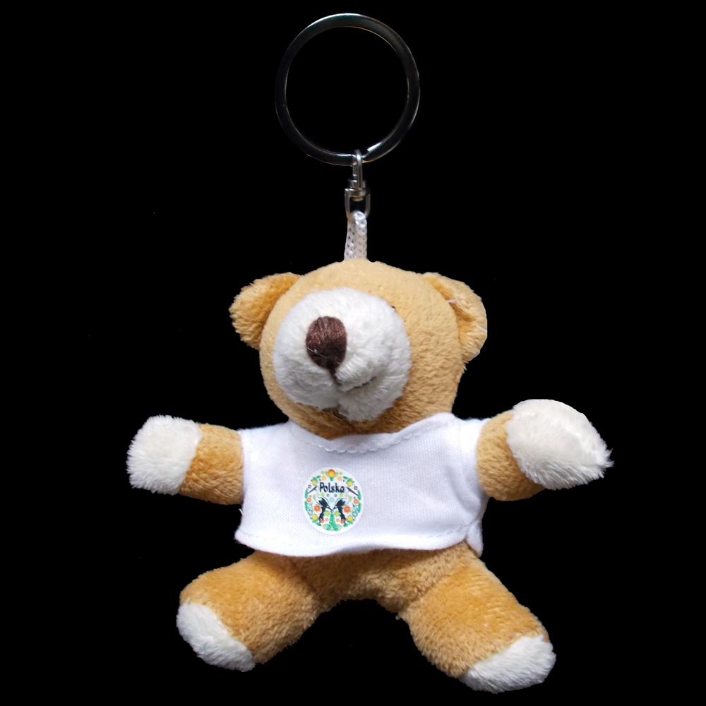 Brelok pluszowy miś jasny lub ciemny w koszulce ze wzorem folklorystycznym i napisem Polska.