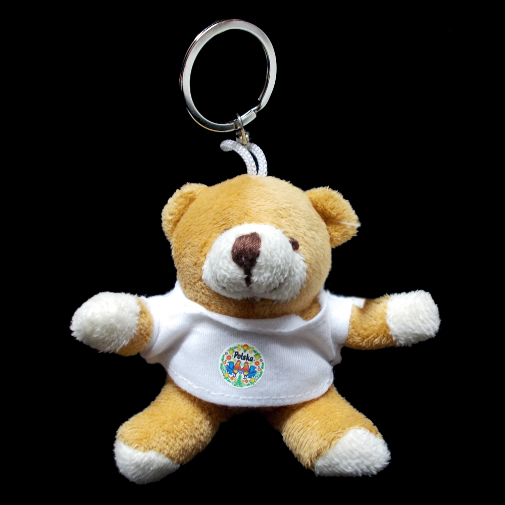 Brelok pluszowy miś jasny lub ciemny w koszulce ze wzorem folklorystycznym i napisem Polska.