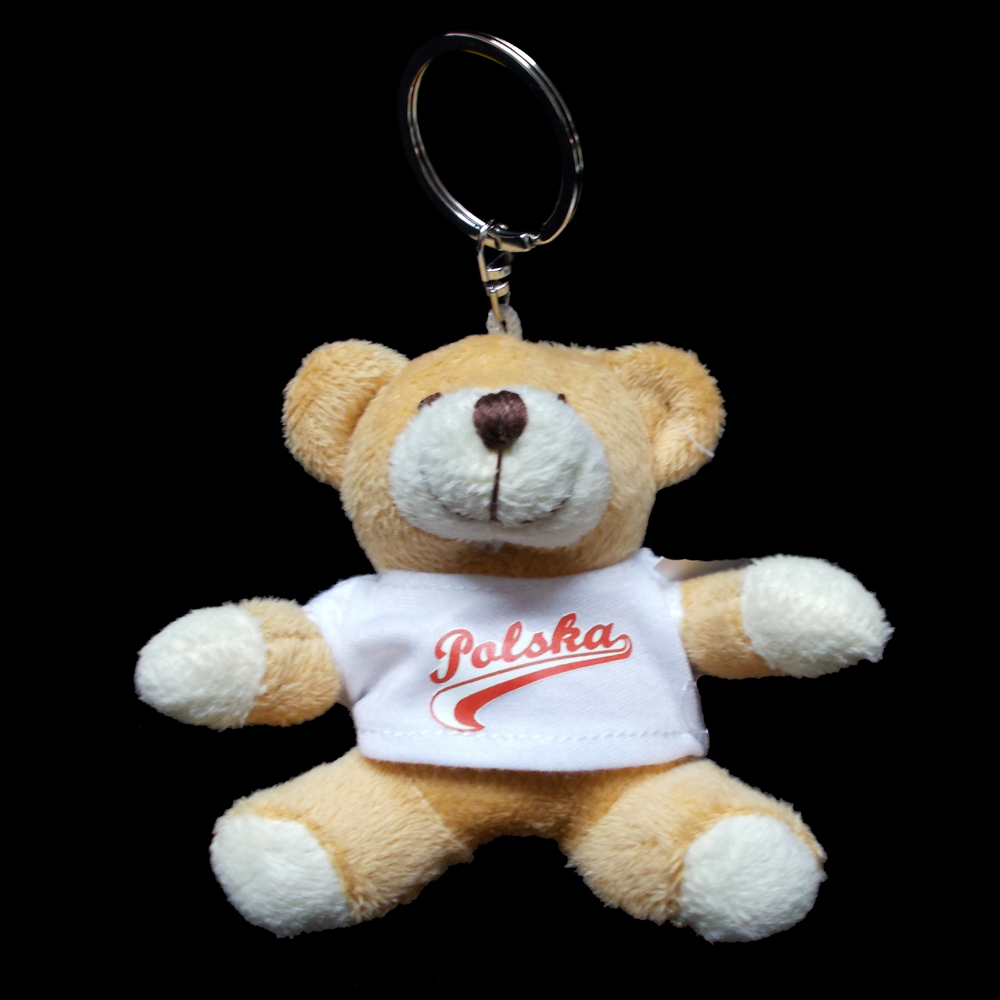 Brelok pluszowy miś jasny lub ciemny w koszulce z napisem Polska.