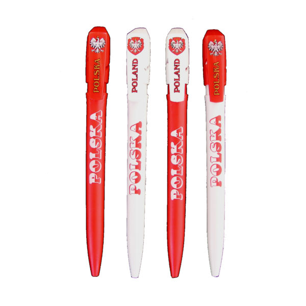 Plastikowy długopis z nadrukowanym napisem “Polska” oraz
