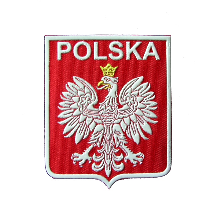 Emblemat (naszywka) przedstawiający godło Polski. Wykończenie z gumy.
