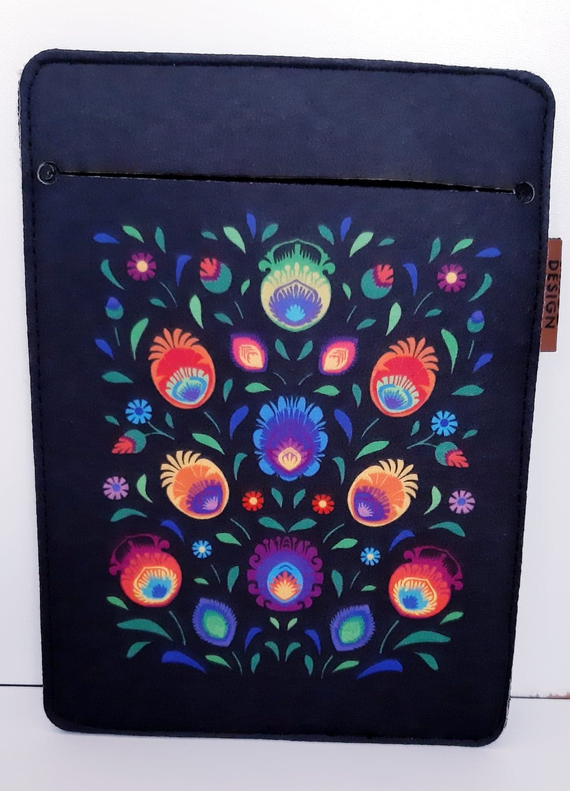 Etui na e-booka – model OBEREK w kolorze czarnym z nadrukiem w stylu folk, wykonany z wysokiej jakości ekologicznego filcu. Etui idealnie nadaje się do przechowywania e-booków oraz pełni funkcje ochrony przed zarysowaniami gdy będą znajdowały się np w torebce.