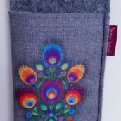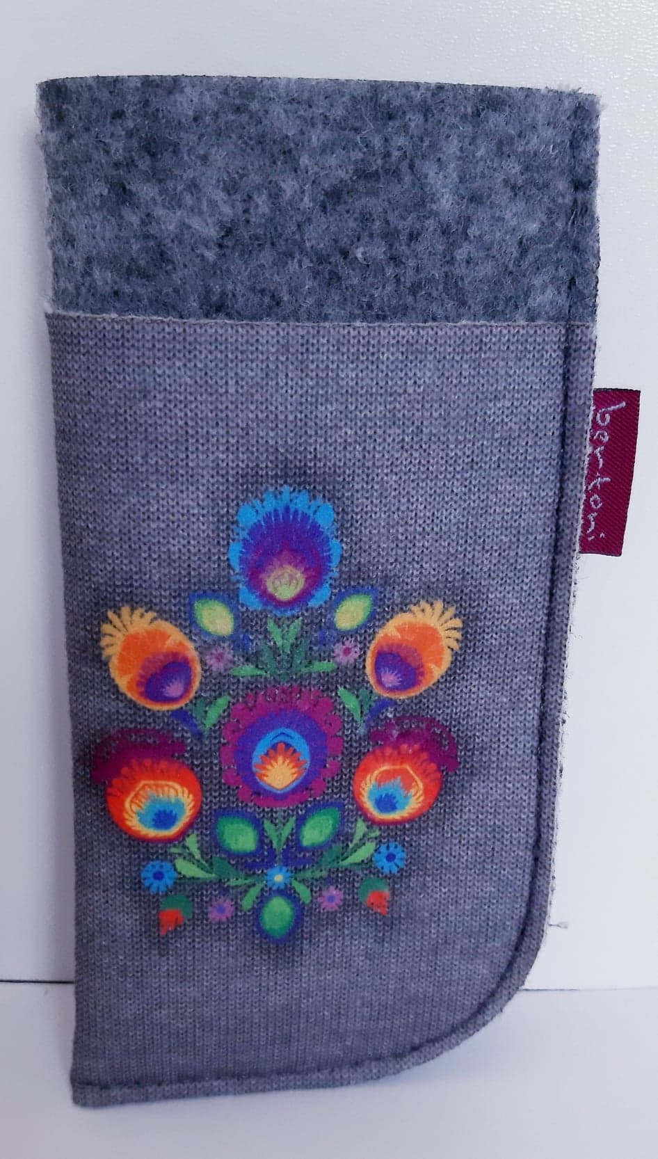 Etui na okulary – model JAGNA w kolorze szarym z nadrukiem w stylu folk, wykonany z wysokiej jakości ekologicznego filcu. Etui idealnie nadaje się do przechowywania okularów oraz pełni funkcje ochrony przed zarysowaniami gdy będą znajdowały się np w torebce.
