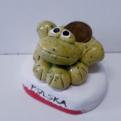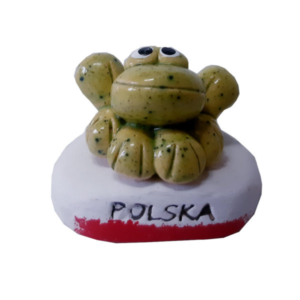 Ceramiczna figurka żaby z groszem na szczęście, oraz z napisem Polska