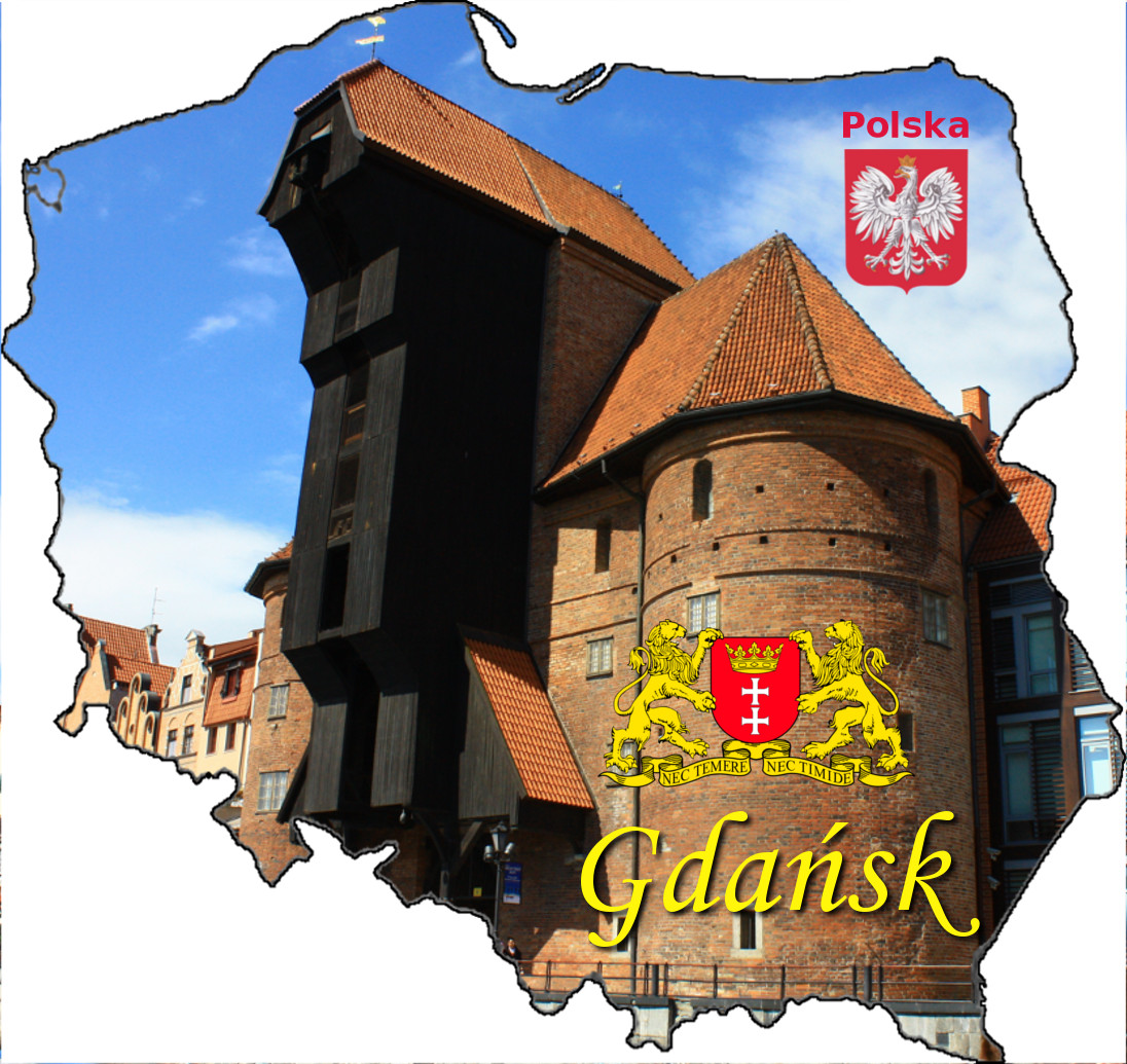 Fotomagnes w kształcie granic Polski. Prezentuje Żurawia Portowego w Gdańsku