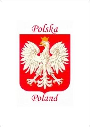 Fotomagnes na lodówkę. Przedstawia Godło Polski z napisem Polska w języku Polskim i Angielskim.