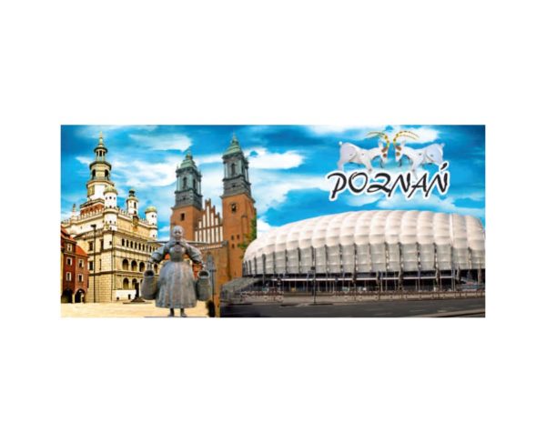 Magnes Holograficzny z nadrukowaną grafiką przedstawiającą niektóre z najciekawszych zabytków i atrakcji Poznania ułożonych w jeden obraz.
