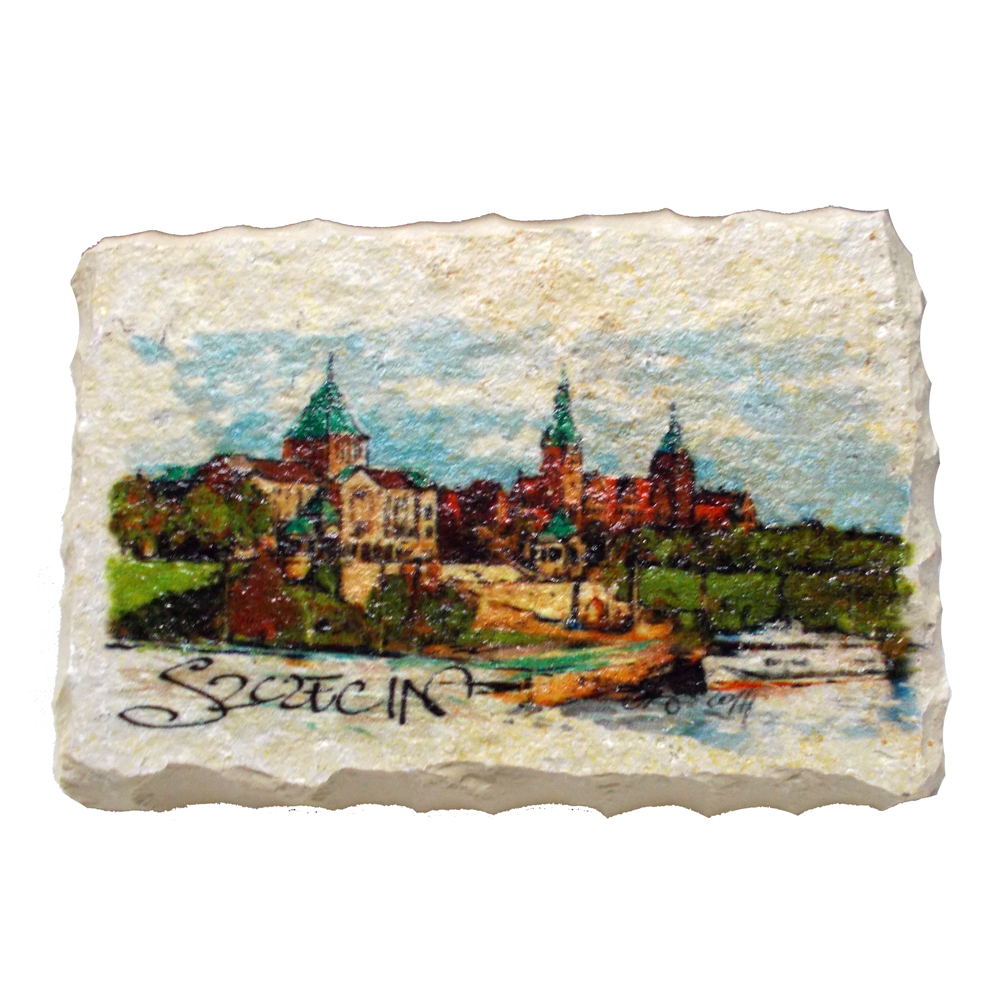 Magnes na skale wapiennej z obrazkiem szczecin wały