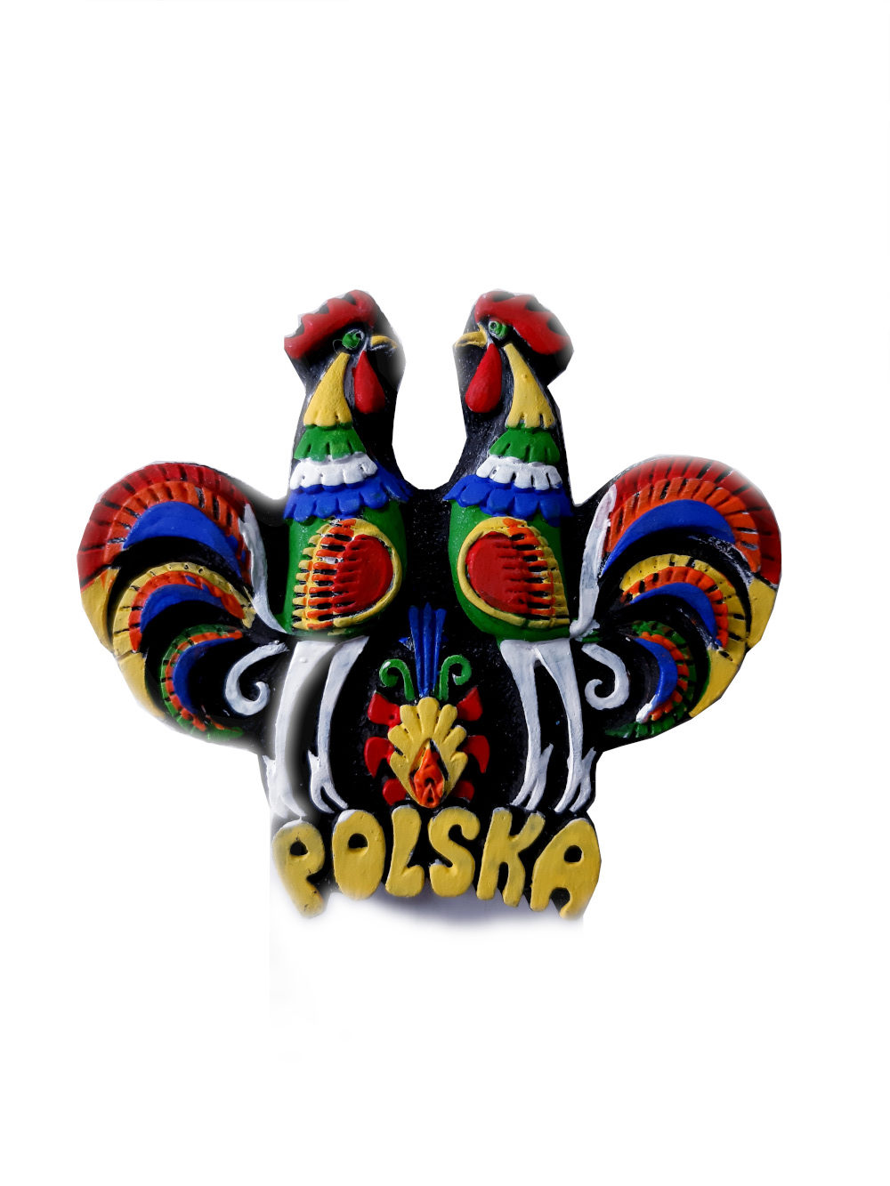 Magnes policeramiczny (z żywicy syntetycznej) w kształcie kogutów z napisem Polska