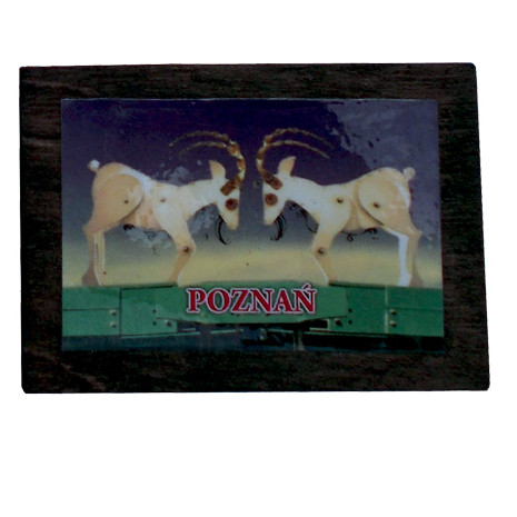Obrazek w stylistyce retro naklejony na deseczkę z magnesem. Wzór przedstawiający Poznań