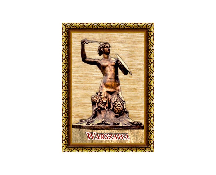 Magnes wykonany ze sklejki z nadrukowaną grafiką przedstawiającą zabytki Warszawy.