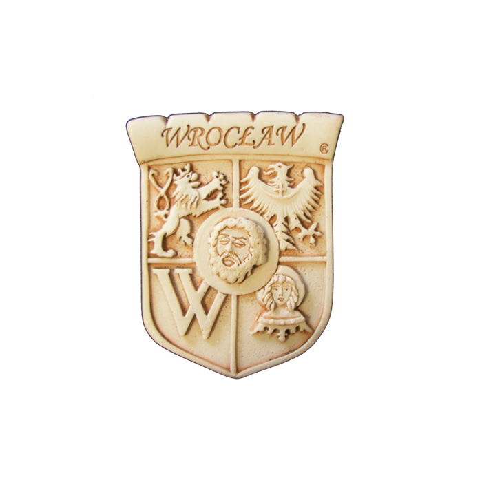 Magnes z żywicy syntetycznej przedstawiający herb Wrocławia.