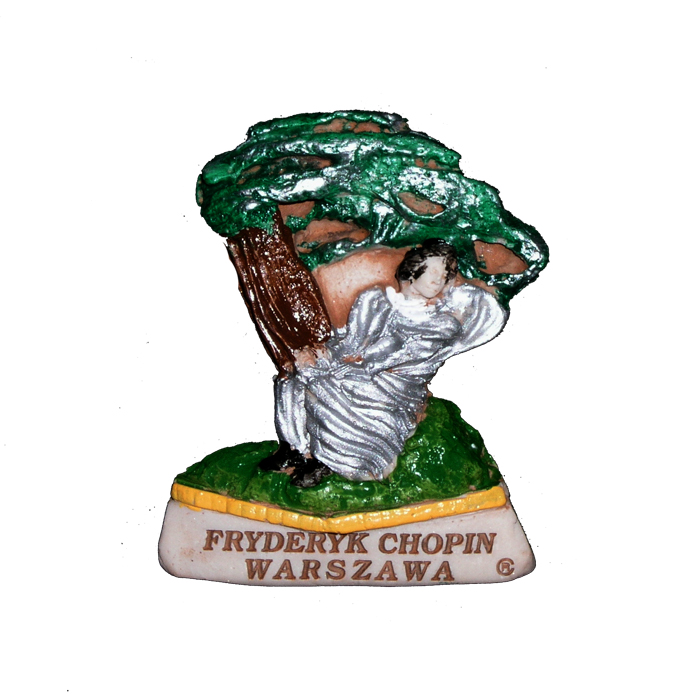Magnes z żywicy syntetycznej przedstawiający Fryderyka Chopina.