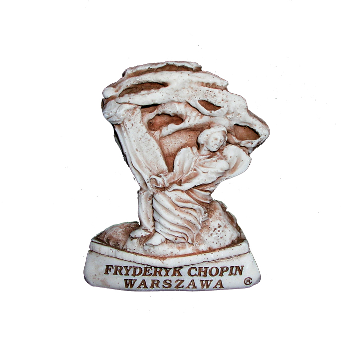 Magnes z żywicy syntetycznej przedstawiający Fryderyka Chopina.