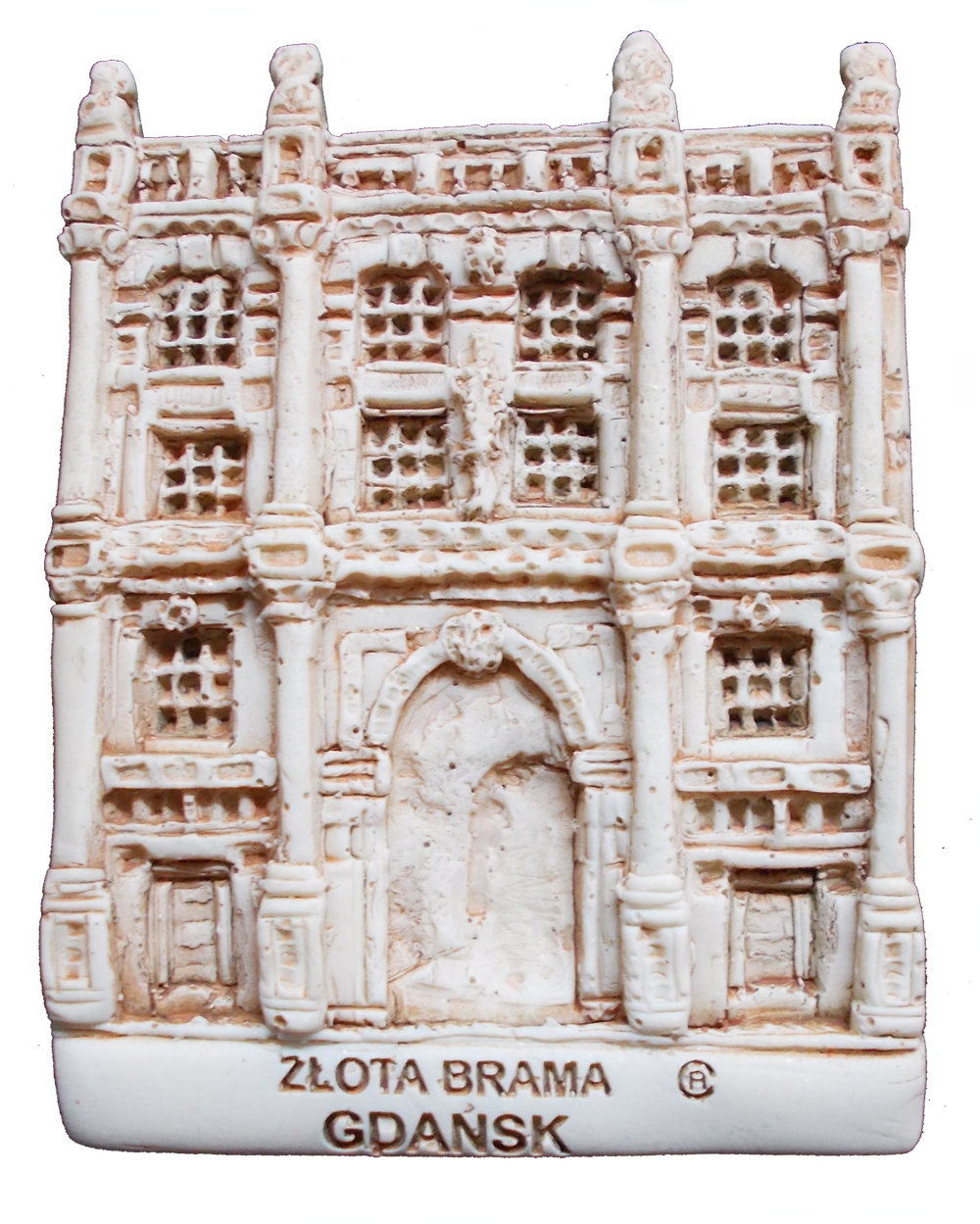 Magnes z żywicy syntetycznej przedstawiający gdańską Złota Bramę.