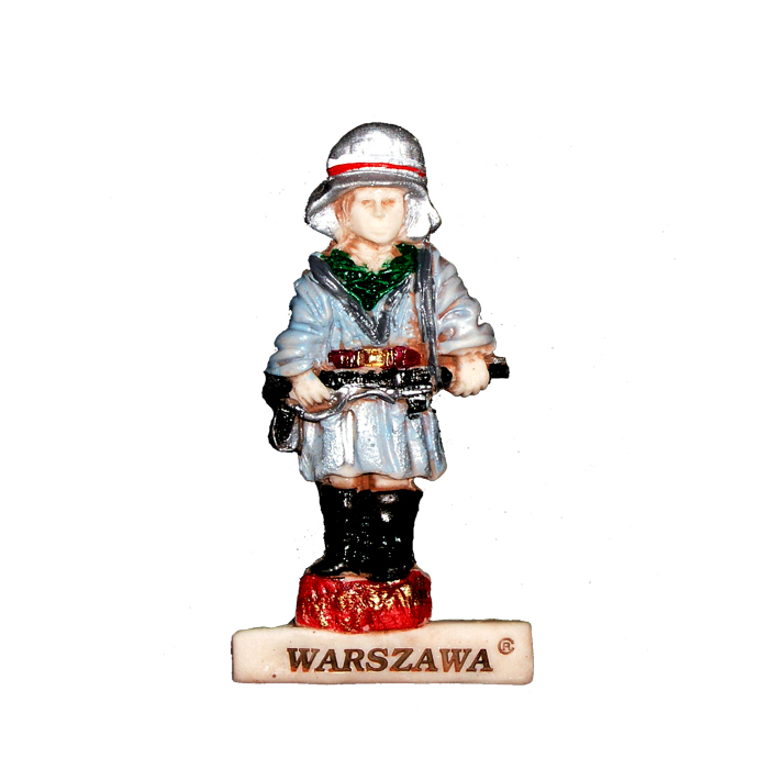 Magnes z żywicy syntetycznej przedstawiający warszawskiego Powstańca.