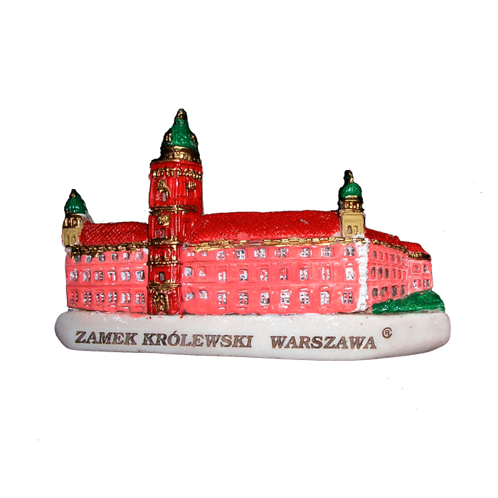 Magnes z żywicy syntetycznej przedstawiający warszawski zamek Królewski.