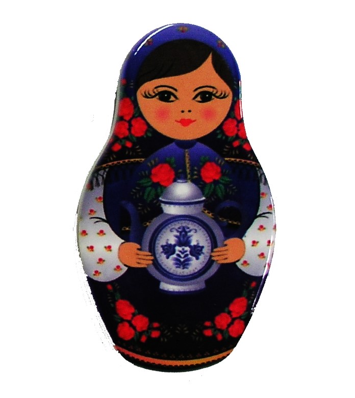 Magnes ceramiczna, z nadrukowanym wizerunkiem matrioszki.
