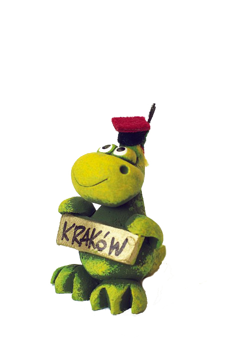 Mały smoczek ceramiczny trzymający tabliczkę z napisem Kraków.