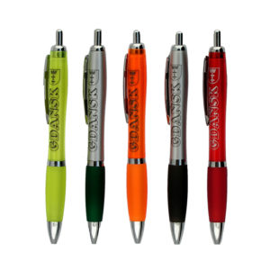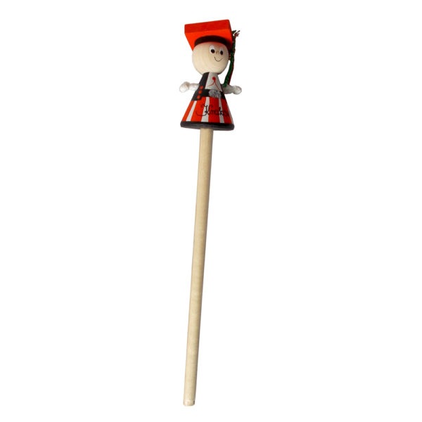 Drewniany ołówek z napisem Kraków oraz drewnianym Krakowiakiem w różnych kolorach.