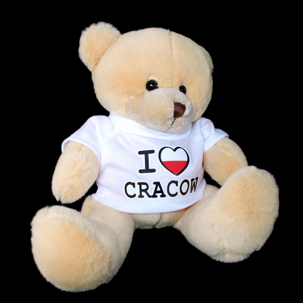 Pluszowy miś jasny lub ciemny w koszulce z napisem.