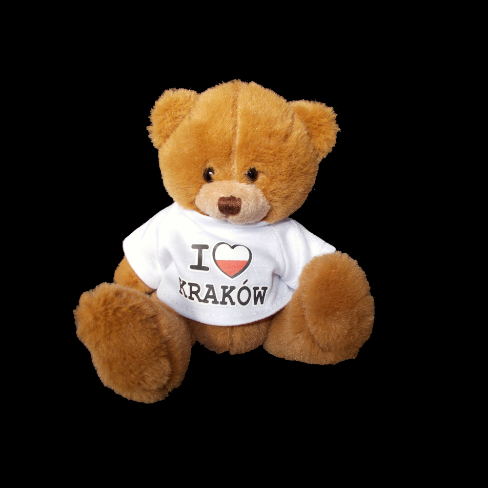 Pluszowy miś jasny lub ciemny w koszulce z napisem.