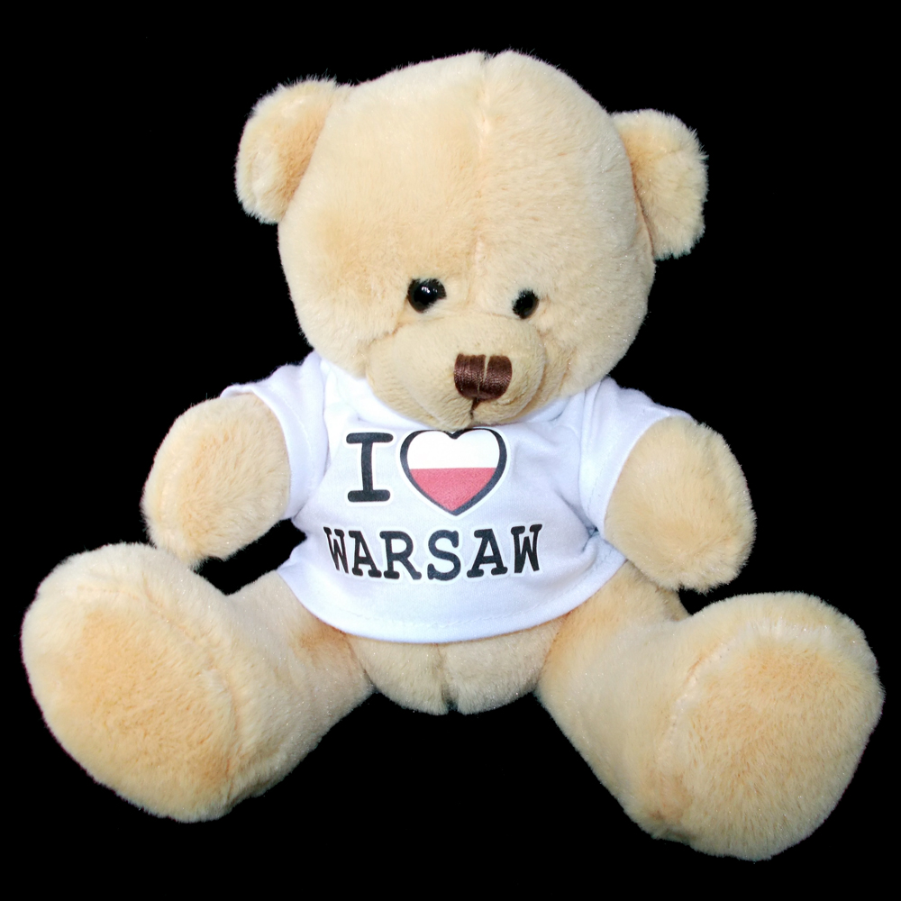 Pluszowy miś jasny lub ciemny w koszulce z napisem.
