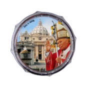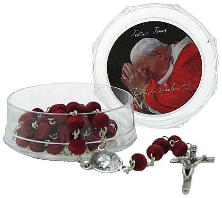 Zapachowy różaniec wykonany z drzewa różanego, zapakowany w pudełko z nadrukiem Papieża Jana Pawła II