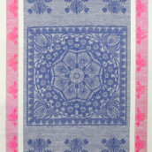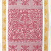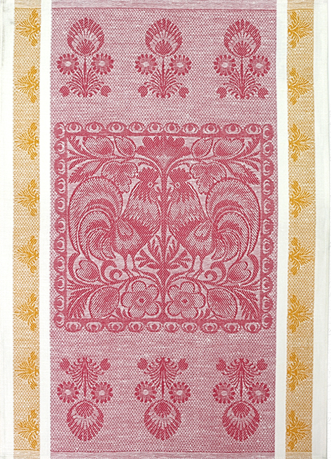 Ściereczka kuchenna ozdobiona wzorami ludowymi.