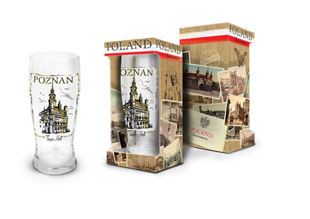 Szklanka o pojemności 0,5l, ozdobiona nadrukiem przedstawiającym Ratusz w Poznaniu. Zapakowana w kartonik, w sam raz na prezent.