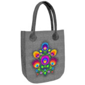 Torebka- model CITY JAGNA w kolorze szarym z nadrukiem w stylu folk, wykonana z wysokiej jakości ekologicznego filcu. Zachwyca swą prostotą i dopasowuje się do różnych stylizacji, nadając modowy szyk. Torebka jest 100% polskim produktem.