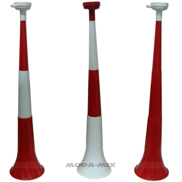 Trąbka wuwuzela trzyelementowa rozsuwana teleskopowo, w barwach narodowych. Wykonana z plastiku.