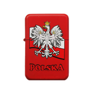 Zapalniczka gazowa piezoelektryczna do wielokrotnego napełniania, z utrudnionym uruchamianiem dla dzieci. Ozdobiona nadrukiem prezentującym herb Wrocławia.