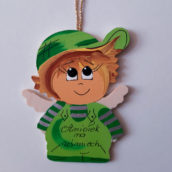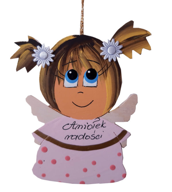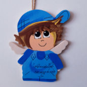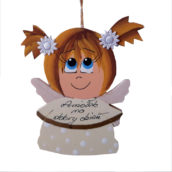 Zawieszka aniołka wykonana z dobrej jakości sklejki, w pięknych kolorach i z różnymi napisami.